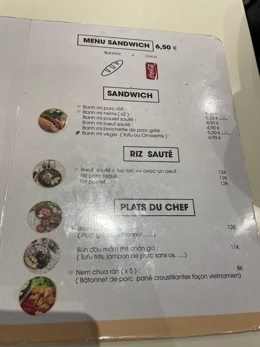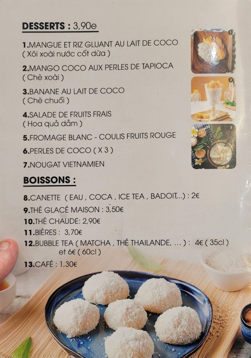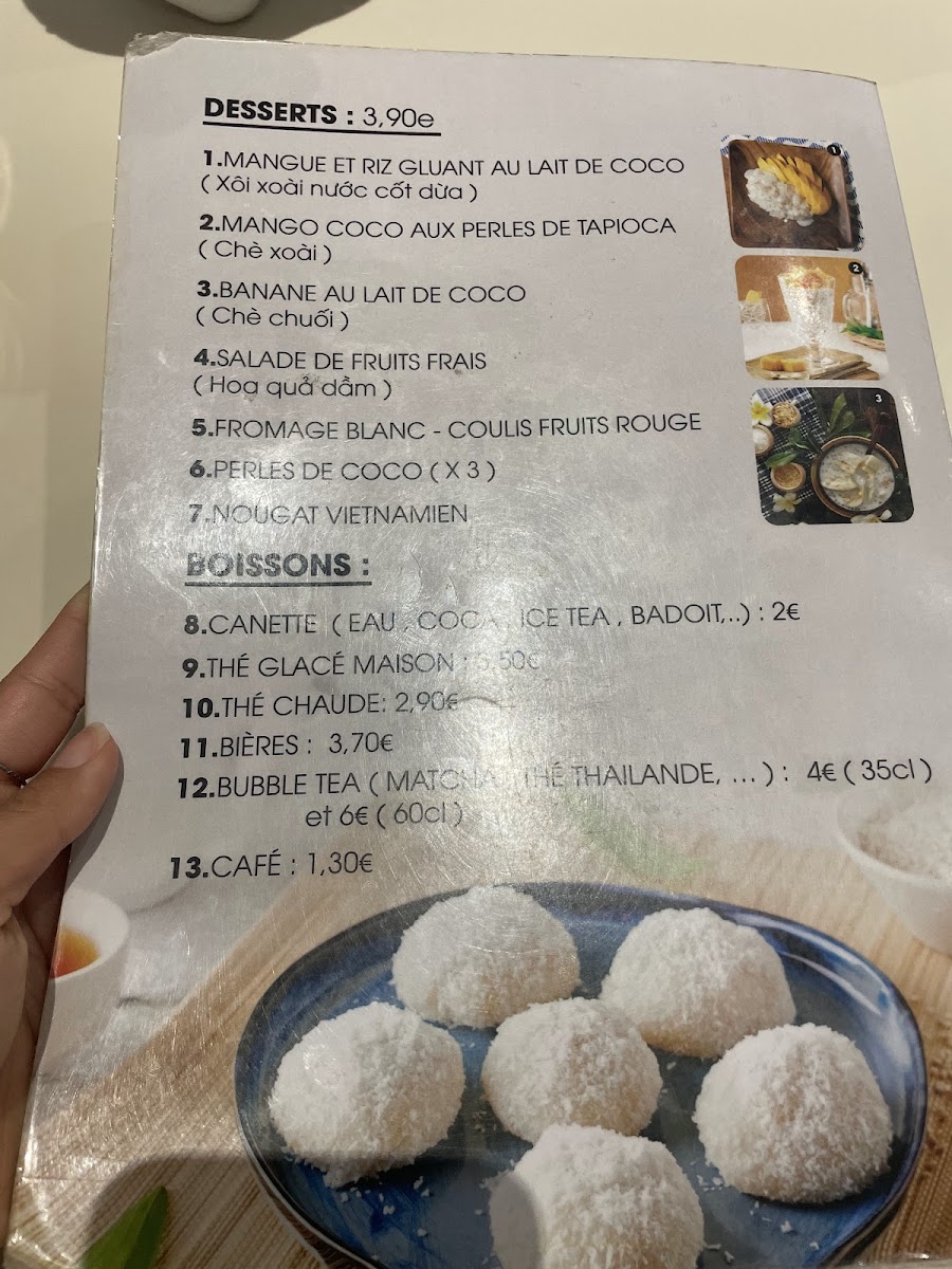 It’s a small Vietnamese restaurant in a quiet neighborhood. Food was really good! I had their lunch menu which was a pretty good deal! Mango sticky rice really stood out for me! Staff aren’t very good with english but it’s okay, you can just point what you want in the menu. It was a bit challenging to use google translate in the restaurant because of low network signal so better to have an idea of what you’ll have before going if you don’t know any french.